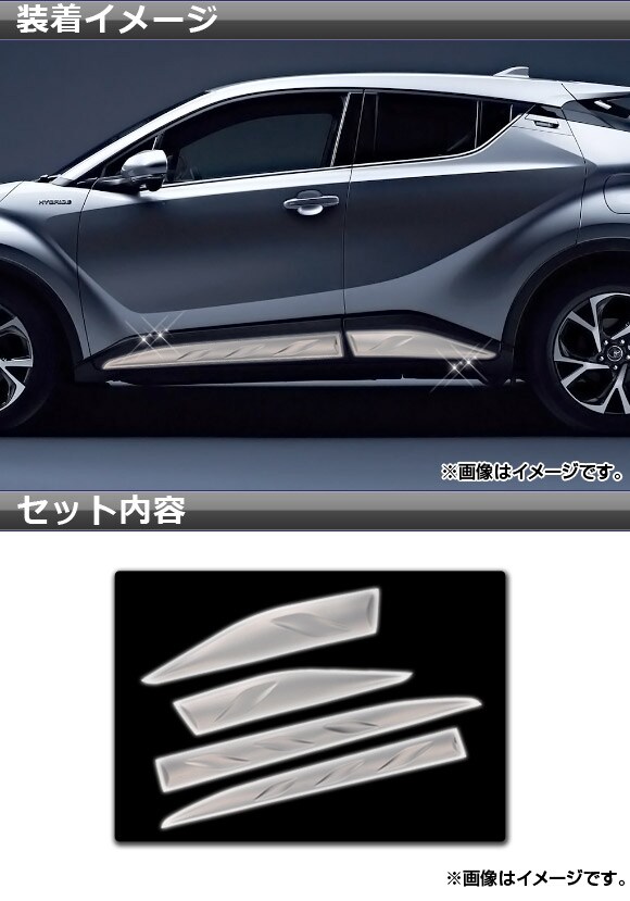 サイドドアアンダーガーニッシュ トヨタ C-HR NGX50/ZYX10 ハイブリッド可 2016年12月~ ステンレス 鏡面仕上げ 入数:1セット(4個) AP-DG029