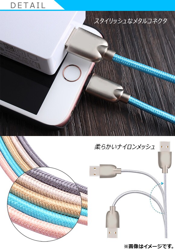 メタルコネクタ ナイロンメッシュ 同期/充電/データ転送に!