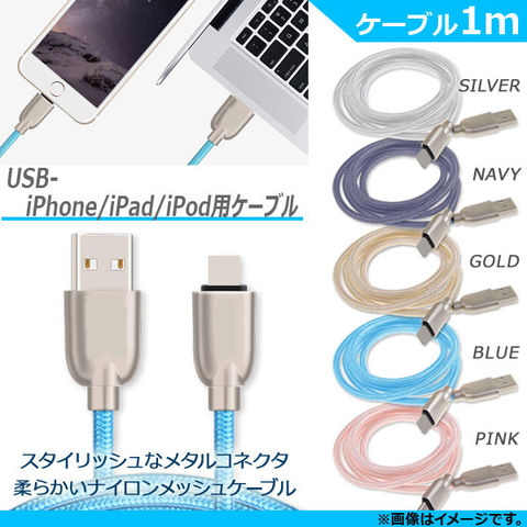USB変換ケーブル iPhone/iPad/iPod用 1M メタルコネクタ ナイロンメッシュ 同期/充電/データ転送に! 選べる5カラー AP-MM0008-LI-100