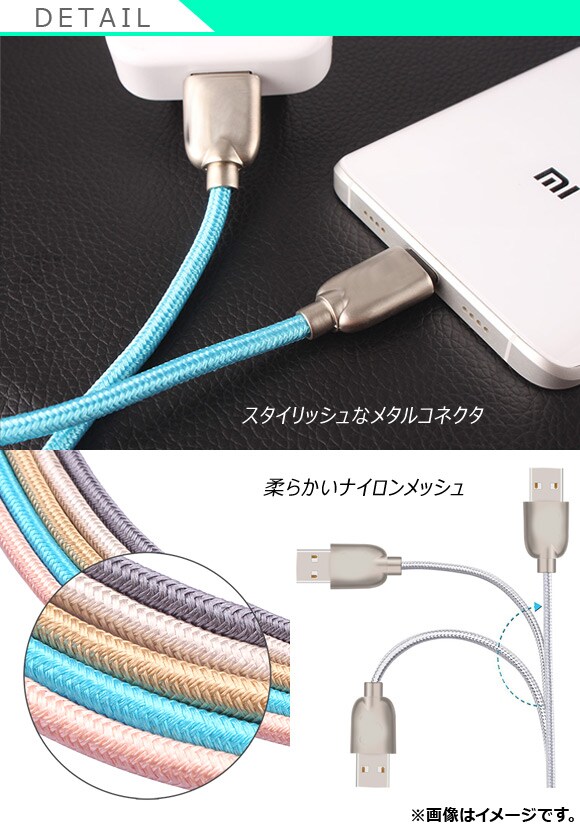 メタルコネクタ ナイロンメッシュ 同期/充電/データ転送に!