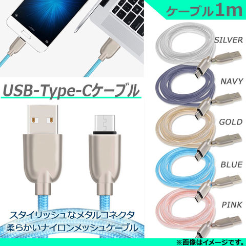 USB変換ケーブル USB Type-C 1M メタルコネクタ ナイロンメッシュ 同期/充電/データ転送に! 選べる5カラー AP-MM0008-TC-100