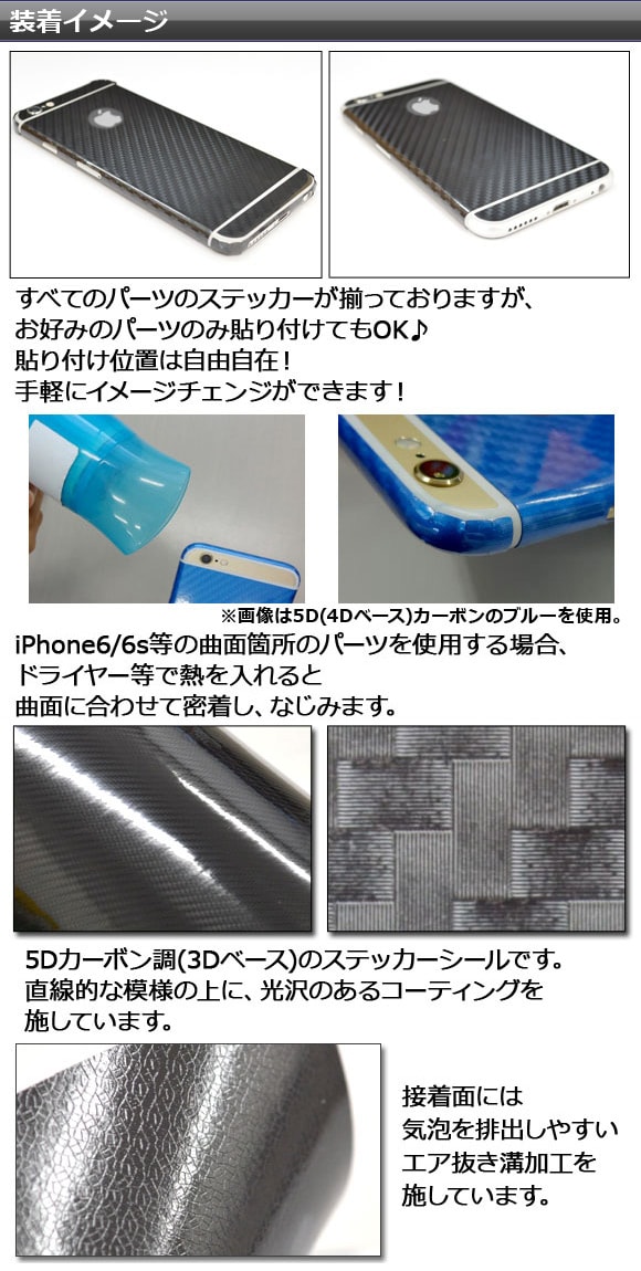 スキンシール 5Dカーボン調(3Dベース) iPhone用 背面タイプ1 保護やキズ隠しに! 選べる20カラー iPhone5,6,7など AP-5TH1363