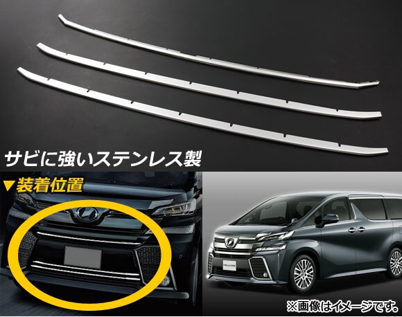 フロントバンパーグリルカバー トヨタ ヴェルファイア/ヴェルファイアハイブリッド 30系 2015年01月~ ステンレス 入数:1セット(3個) AP-FG014