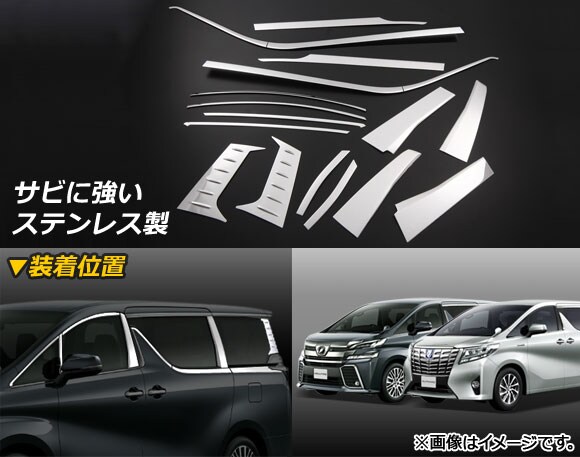ウインドウトリム&ピラーセット トヨタ アルファード/ヴェルファイア 30系 ハイブリッド可 2015年01月~ ステンレス 入数:1セット(16個) AP-DG034