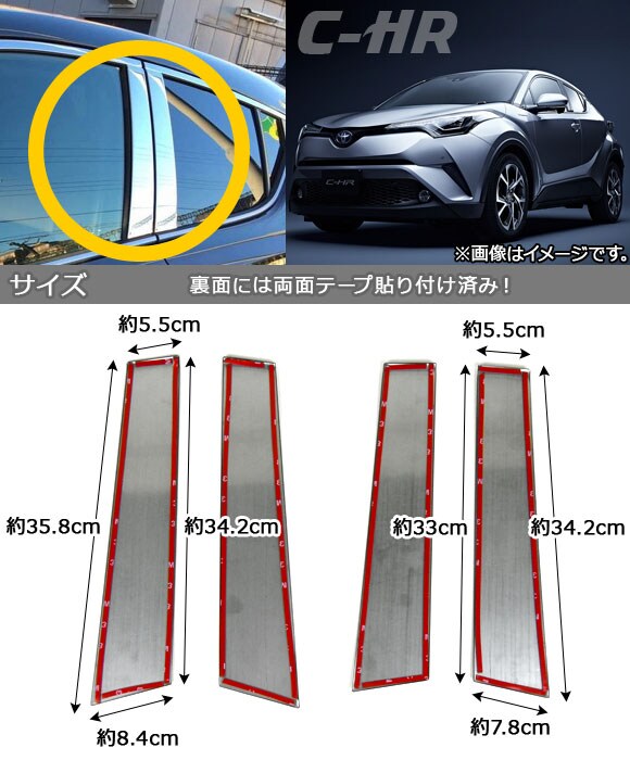 ピラーカバー トヨタ C-HR NGX50/ZYX10 サイドバイザー無し車用 ハイブリッド可 2016年12月~ ステンレス AP-DG024-P 入数:1セット(4枚)