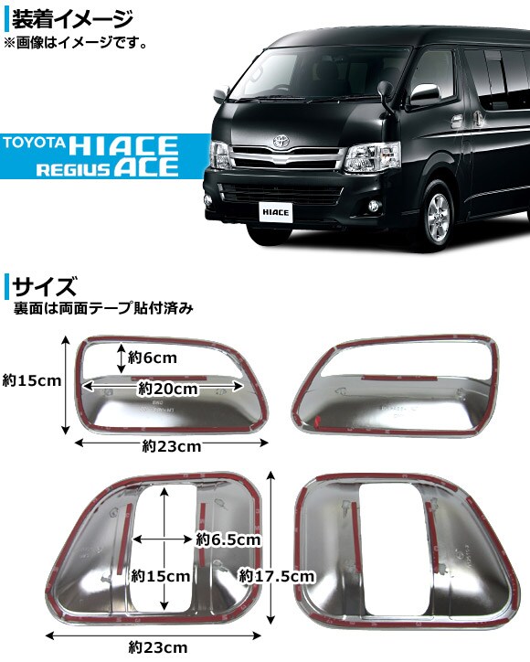 メッキドアハンドルインナーカバー トヨタ ハイエース/レジアスエース 200系 標準/ワイドボディ 1型/2型/3型/4型 2004年08月~ 入数:1セット(4ピース) APHC200-SR