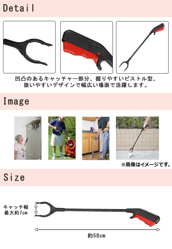 高い棚の上や、隙間に落ちた小物などをつかむのに大変便利です。