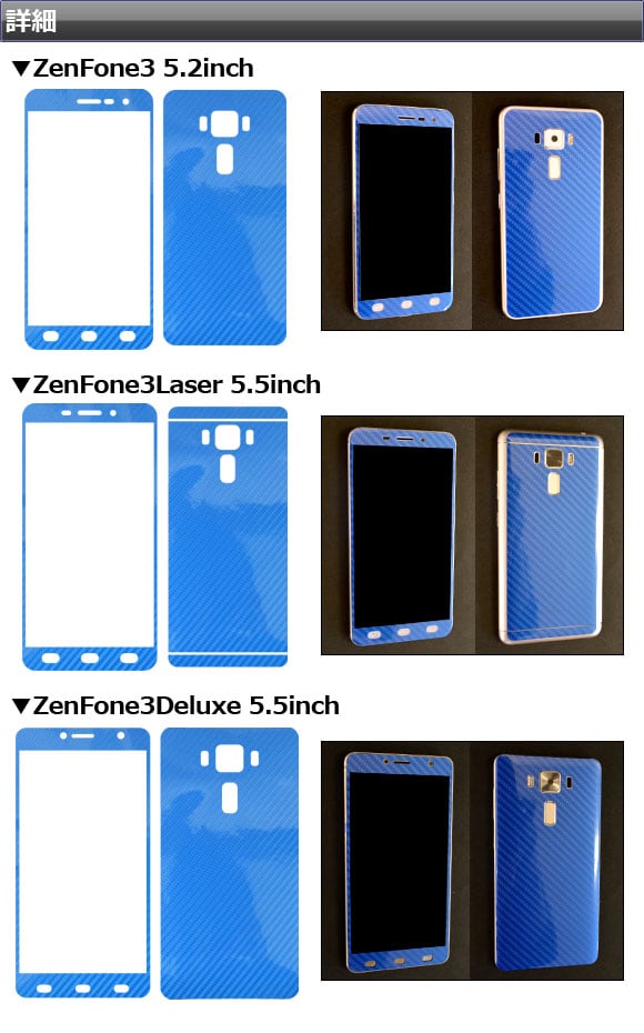 スキンシール 5Dカーボン調(4Dベース) ASUS ZenFone用 保護やキズ隠しに! 選べる20カラー 選べる3適用品 AP-5FR1574