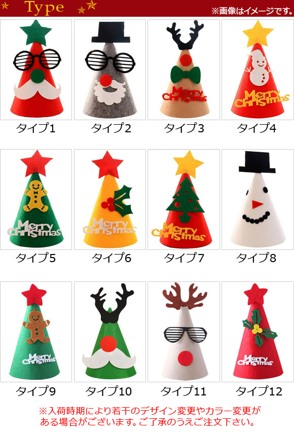 クリスマス帽子 フェルトタイプ パーティーやイベントにおススメ MerryChristmas♪ 選べる12タイプ AP-AR125