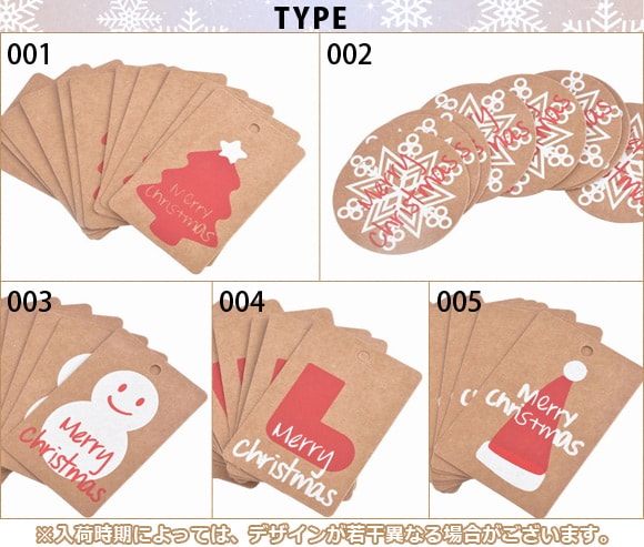 ペーパータグ オーナメント しおり ラッピング アクセ台紙 MerryChristmas♪ 使い方色々♪ 選べる5バリエーション AP-UJ0111-100 入数:1セット(100個)