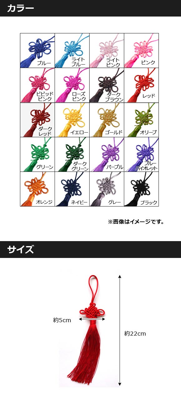 中国結び房かざり 中国結びタッセル 幸運を呼ぶ吉祥結び! 車内・お部屋のインテリアに♪ 選べる20カラー 入数:1セット(2個) AP-UJ0122-2