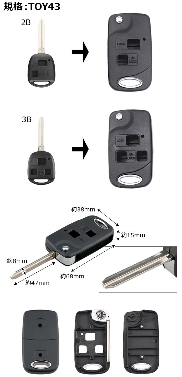 ブランクキー キーシェル ジャンプキー ジャックキー ジャックナイフキー 折りたたみキー スペアキー キーレスカバー 鍵 キー カギ スペア スペアー 合鍵 リモコンキー リペアキー ブレード TOY43 TOY43ブレード 折りたたみ式 折りたたみ ジャンプ式 ジャンプ ジャックナイフ型 ジャックナイフタイプ カバー スイッチ ボタン 交換 ブランク シェル シエル 外溝 修復 破損 紛失 なくす 予備 キーレスエントリー 送信機 リモコン 汎用 互換品 互換 ■参考対応車種 トヨタ エスティマ ノア ヴォクシー ランドクルーザー プラド アルファード