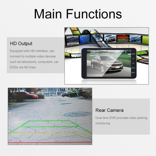 特徴:Microphone,Led Display,Motion Detection,SD/MMC Card,Time&Date Display,Cycle Recording,Night Vision,Dual Lens