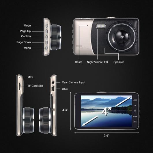 カー用品カメラ 4 ″デュアルレンズ カー DVRカメラ 車載カメラ ビデオカメラGPSナビゲーション バックミラー バックミラーカメラ LED ナイトビジョン AL-AA-1736 AL