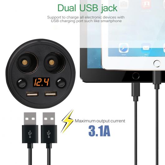 シガーソケットアクセサリ シガーライターアダプタソケット スプリット カー 充電器12-24ボルト 電圧計 電流 ディスプレイ 2ポート120ワット5ボルト3.1AデュアルUSB AL-AA-1844 AL