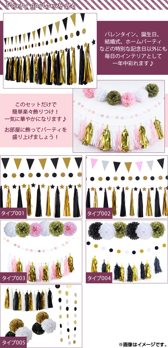 パーティガーランドセット セットで楽々ゴージャスに!ホームパーティやキッズルームの飾りつけに♪ 選べる5バリエーション AP-UJ0134