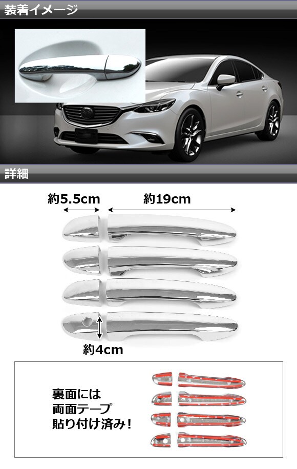 ドアハンドルカバー マツダ アクセラ/アクセラハイブリッド BM系/BY系 2013年11月~ ABS 右ハンドル用 入数:1セット(8個)