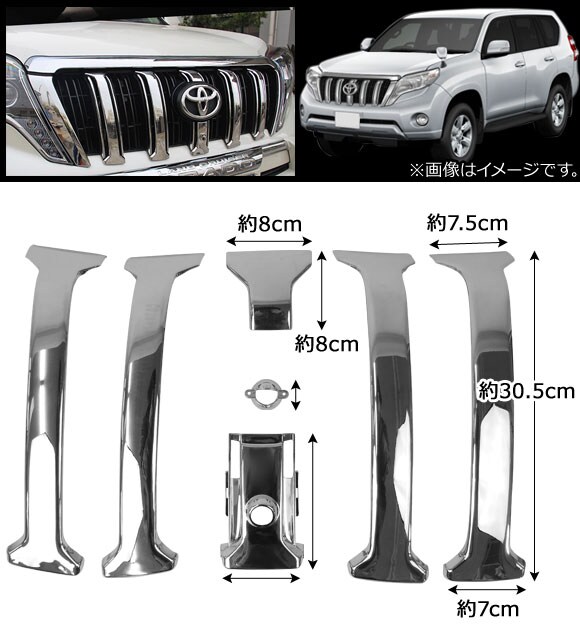 フロントグリルカバー トヨタ ランドクルーザープラド 150系 中期 2013年09月~2017年08月 ABS製 フロントカメラ付き車用 入数:1セット(7個) AP-FG027