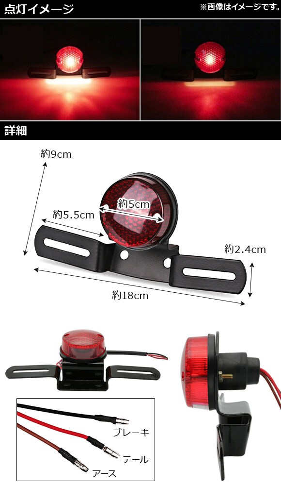 テールランプ テイルランプ ストップランプ ストップライト ブレーキランプ ブレーキライト ライセンスランプ ライセンスライト テールライト バックランプ バックライト テール テイル 尾灯 ランプ ライト ラウンド 丸 丸形 ラウンド型 10ワット 12V 2段階発光 2段階 ウインカー ブレーキ 方向指示器 ナンバー ステー プレート ライセンス 赤 red 発光 点灯 照明 リア リヤ リアー リヤー 背後 後方 フェンダー ポジション スモール カスタマイズ カスタム LED 外装 外装パーツ ドレスアップ