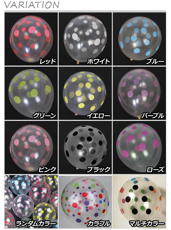 AP クリアバルーン ゴム風船 ドットプリント 約30cm(12インチ) HappyParty♪ 選べる12カラー AP-UJ0221-10P 入数:1セット(10個)