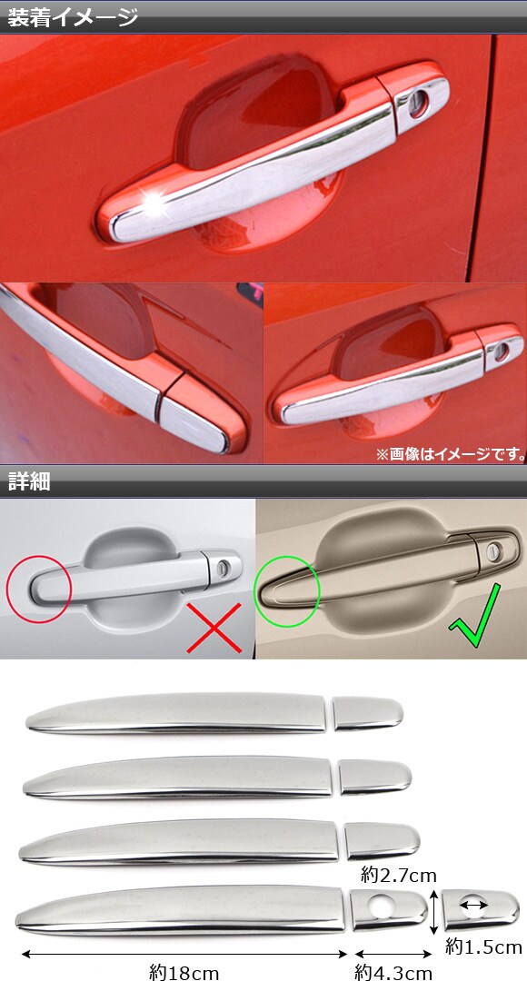 アウトサイドドアハンドルカバー ドアノブカバー ドアカバー ハンドルカバー ドアハンドルカバー カバー アウトサイドドア サイドドアハンドル ドアハンドル ドアハンドルガーニッシュ ガード ドアノブガーニッシュ メッキカバー ドアノブ 取っ手 ノブ サイドドア ドア ハンドル ガーニッシュ スマートエントリー スマートキー インテリジェンスキー シルバー クローム クロム 銀 ステンレス 鏡面仕上げ 鏡面 鍵穴 キーホール 外装 外装パーツ パーツ エクステリア ドレスアップ カスタム カスタマイズ 装飾 汎用