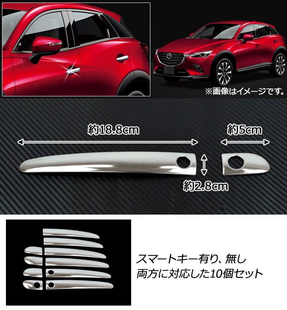 ドアハンドルカバー マツダ CX-3 DK系(DK5FW,DK5AW) スマートキー有無両対応 2015年02月~ ハーフタイプ ステンレス製 AP-XT185 入数:1セット(10個)