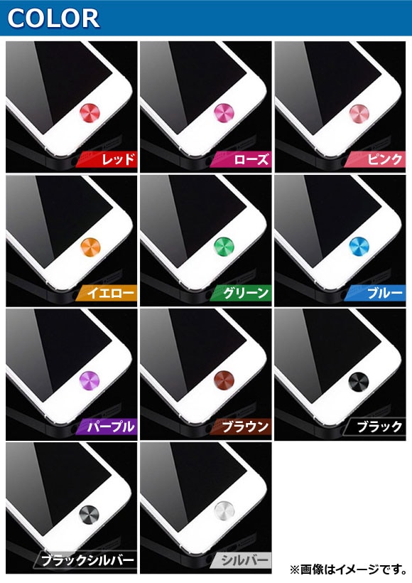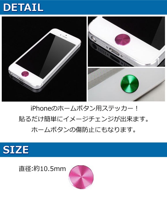 iPhone用ホームボタンステッカー iPhone5/4S/4/3GS/3Gなど アルミニウム 直径10.5mm 選べる11カラー AP-MM0048