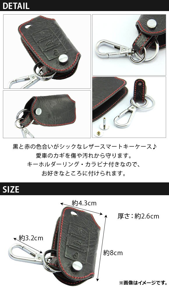 黒と赤の色合いがシックなレザースマートキーケース♪