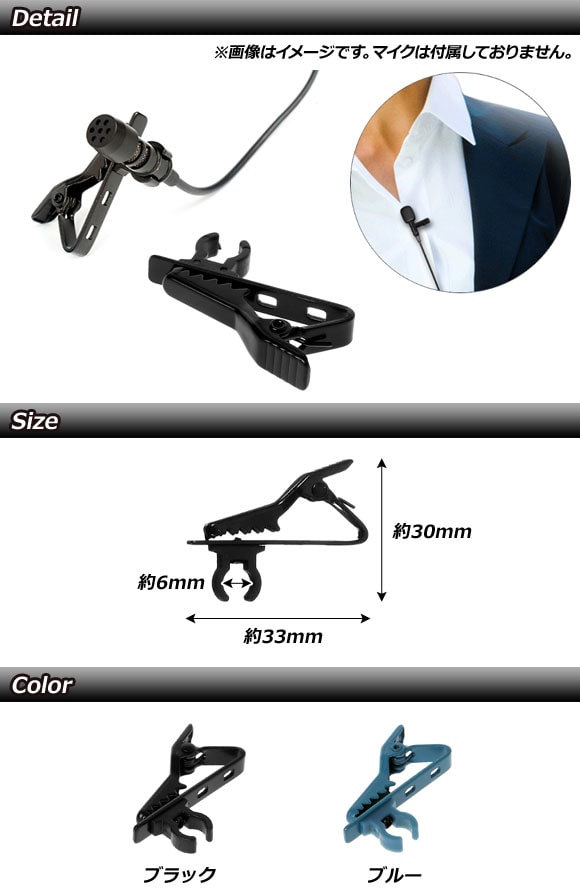 ミニマイククリップホルダー 6mm タイピンでハンズフリーに! 選べる2カラー AP-UJ0321