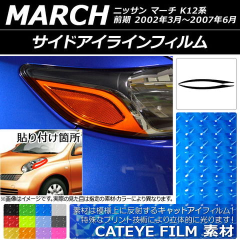 サイドアイラインフィルム ニッサン マーチ K12/BK12/BNK12/AK12/YK12 前期 キャットアイタイプ 選べる12カラー AP-YLCT074 入数:1セット(2枚)