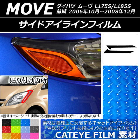 サイドアイラインフィルム ダイハツ ムーヴ L175S/L185S 前期 2006年10月~2008年12月 キャットアイタイプ 選べる12カラー AP-YLCT075 入数:1セット(2枚)