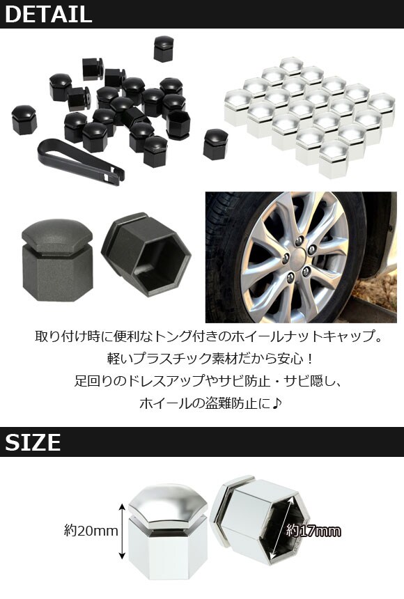 ナットキャップ ナット キャップ ホイールナット ホイール ホイールナットカバー ナットカバー カバー プラスチック プラ タイヤ 錆止め サビ さび 防止 ガーニッシュ 外装 パーツ エクステリア ヘキサゴン 六角 6角 汎用 17mm 17ミリ 20mm 20ミリ 装飾 ドレスアップ