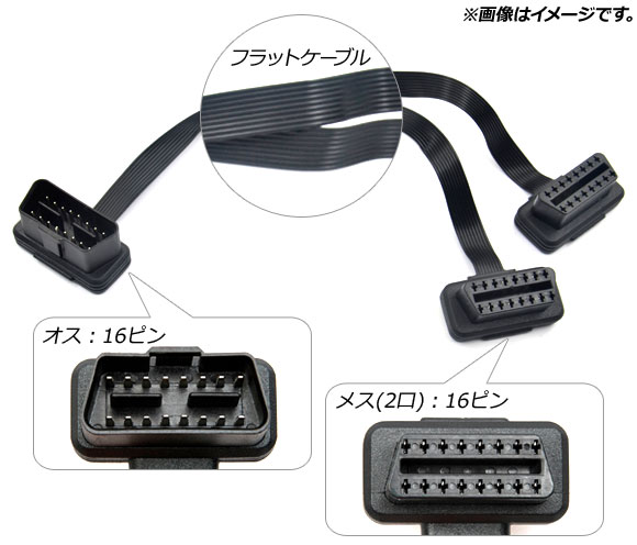 OBD2 分岐ハーネス 2口 フラットケーブル L字型コネクター オス16ピン-メス16ピン/メス16ピン AP-EC184