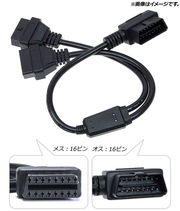 OBD2 分岐ハーネス 2口 L字型コネクター オス16ピン-メス16ピン/メス16ピン AP-EC186