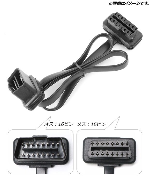 AP OBD2 延長ケーブル 60cm フラットケーブル L字型コネクター オス16ピン-メス16ピン AP-EC188-60CM