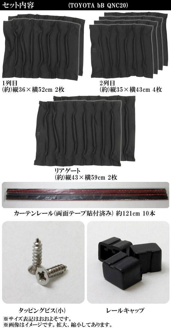 車種別専用カーテンセット トヨタ bB 20系 2005年12月~ 入数:1セット(8ピース) AP-CT02