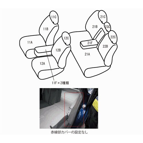 後席背もたれの、リクライニング時にドア側に残るパーツのカバー付属無し