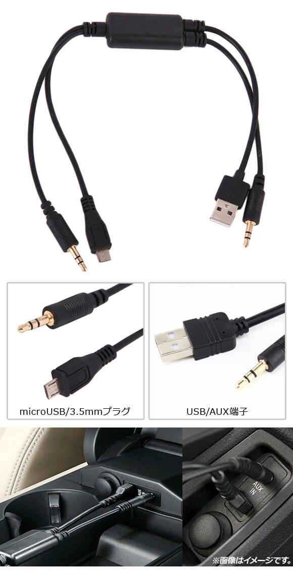 カーオーディオAUXケーブル BMW汎用 USB,AUX端子-microUSB,3.5mmプラグ カーオーディオにスマホ、タブレットを接続! AP-EC196