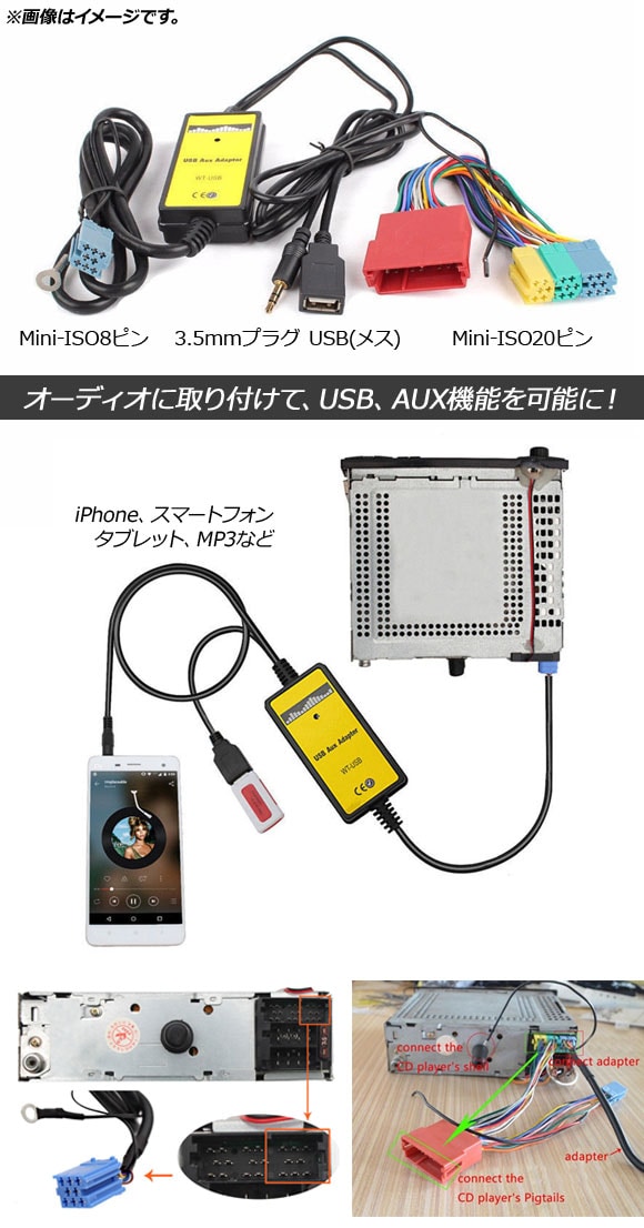 ・Mini-ISOカプラー8ピン-3.5mmAUXステレオミニプラグ