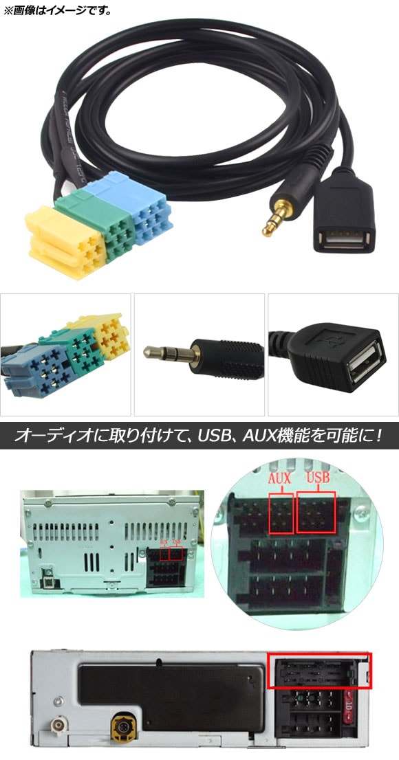 オーディオに取り付けて、USB、AUX機能を可能にできます。