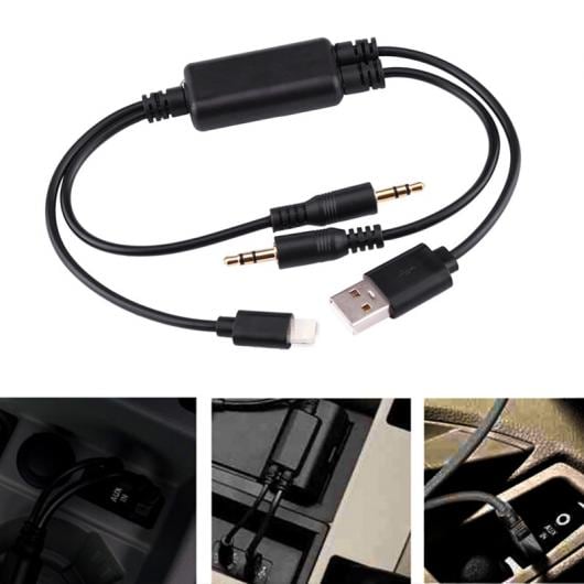 車用ケーブル カー オーディオ AMImm I MDI 3.5mm USB AUX アダプタ インタフェースY ケーブル 音楽ワイヤー BMWミニクーパー iPhone 5s 5 6 Plus ブラック AL-AA-7125 AL
