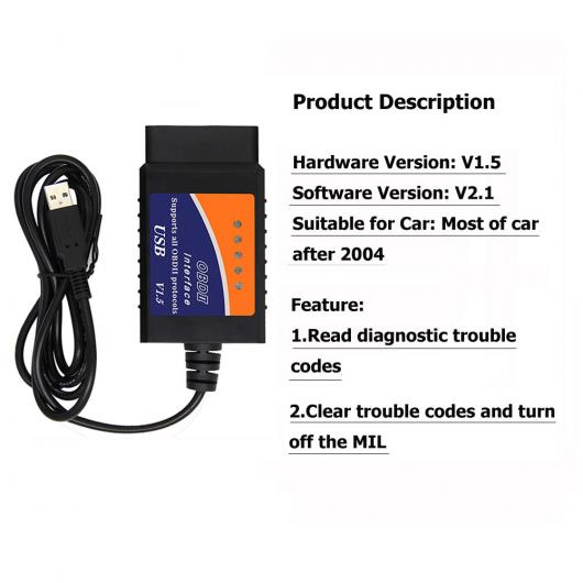 自動車診断機 ELM327 USB OBD2 診断スキャナー車 1.5 ハードウェア ELM 327 V1.5 PIC18F25K80 チップ OBD 2 オート スキャナー診断ツール AL-AA-7457 ALのレビュー