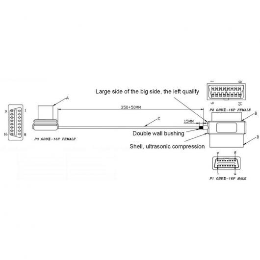 車用ケーブル ポータブル 16 ピン OBD2 延長コード 分割-2 接続 アダプタ 診断フラット ケーブル OBD インタフェース車 AL-AA-7796 ALのレビュー