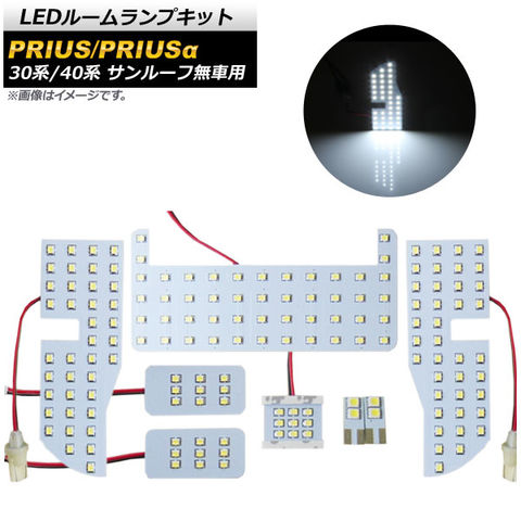 LEDルームランプキット トヨタ プリウス/プリウスα 30系/40系 ZVW30/ZVW40,ZVW41 サンルーフ無し車専用 2009年05月~ ホワイト 157SMD 入数:1セット(8点) AP-RL018