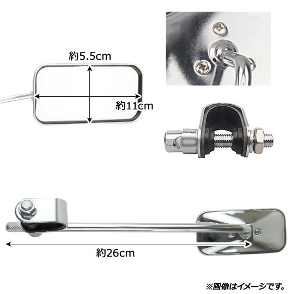 ミラー クローム 汎用 片側 左右兼用 スクエア形 ロングステー クランプ付き AP-2G057