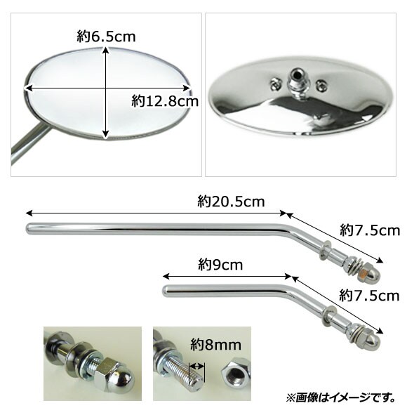 AP ミラー クローム 汎用 片側 左右兼用 オーバル形 ロングステー ショートステー 8mm AP-2G069 2輪