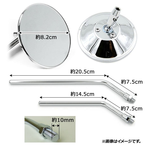 ミラー クローム 汎用 片側 左右兼用 3インチ ラウンド形 ロングステー ショートステー 10mm AP-2G071