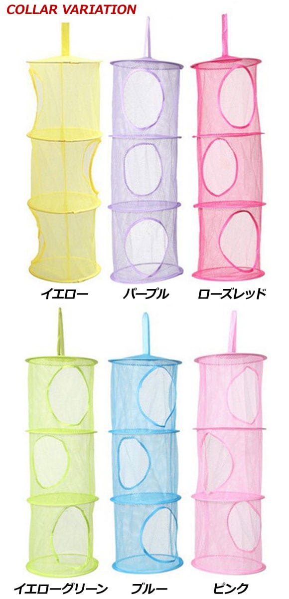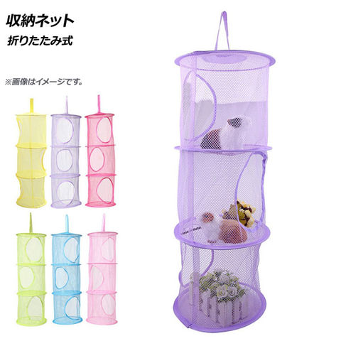 収納ネット 折りたたみ式 吊り下げ オモチャ収納 3段 選べる6カラー AP-UJ0468