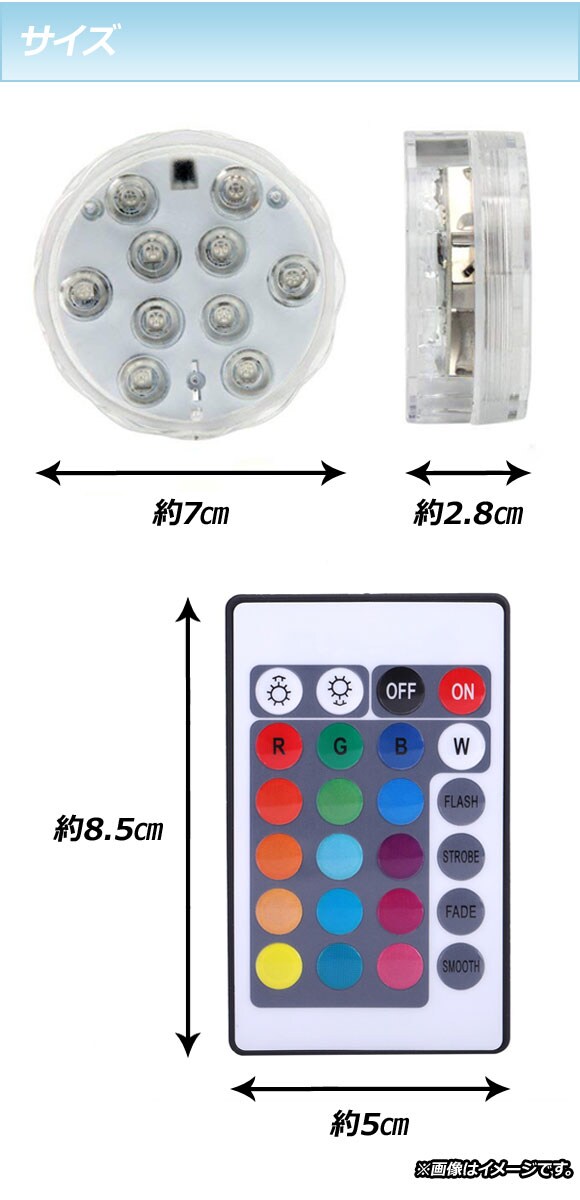 ダイビングライト 潜水ライト LEDライト ナイトランプ キャンドルライト バッテリーライト 水中照明 RGBフルカラーライト LED ダイビング 潜水 水中 照明 バッテリー 電池式 リモコン 装飾 リモート ワイヤレス 10灯LED 花瓶 金魚鉢 浴槽 パーティー プール装飾 アクアライト アクアリウム ライトアップ イルミネーション イルミ ライト ランプ 庭 池 風呂 トイレ お手洗い 洗面台 バス 水槽 ガラスコップ