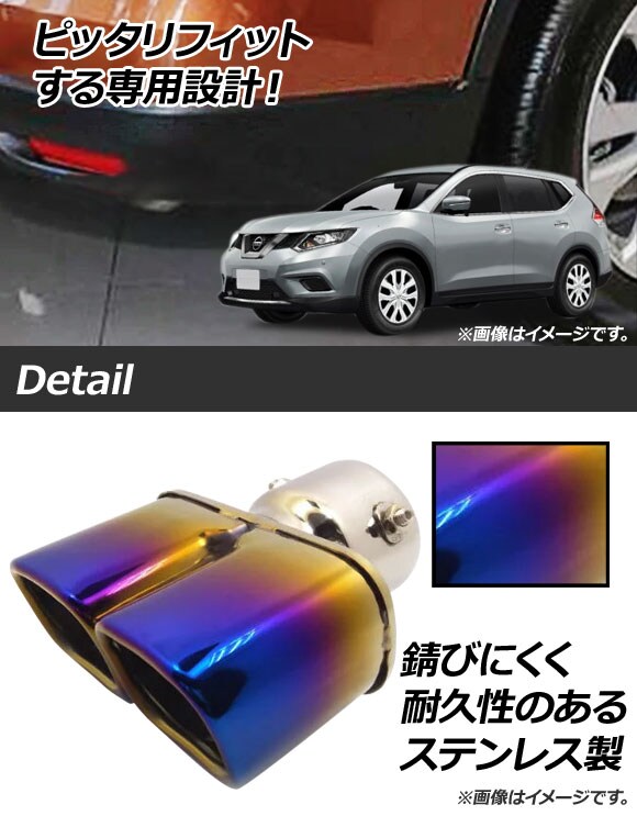 マフラーカッター ニッサン エクストレイル T32 2013年12月~ チタン焼き風 ステンレス スクエア ツイン スタイリッシュなマフラーカッター! AP-XT284-TI